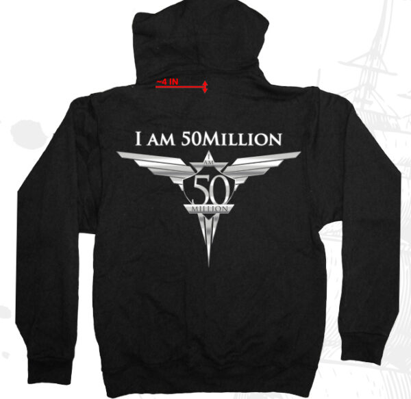 This is our stay warm hoodie. This hoodie says “I Am 50Million” on the front and it has the I am 50Million logo on the back. Wear this hoodie to stay warm and wear it with pride because you know that your support will help others.