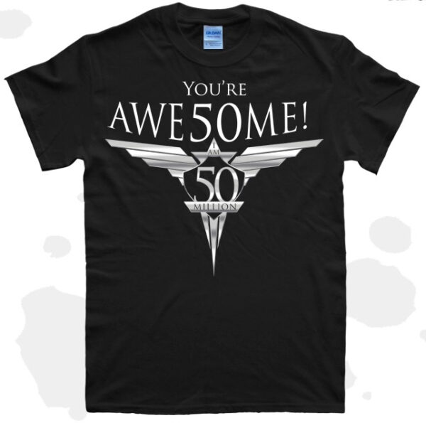 This is our newest shirt that makes not only you but everyone around feel AWE50ME!  How?  Because this shirt tells anyone who sees you that they are AWE50ME and they will feel great for it. The shirt also has the I am 50Million mission statement: “I am committed to achieve greatness. I will change the world by my actions because I am grateful for my blessings.”  This shirt truly makes you and everyone around you feel AWE50ME!